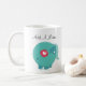 Un elefante azul y un corazón azul con el texto que lee "amor verdadero" y un área usted puede añadir fácilmente un nombre.