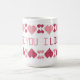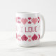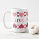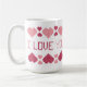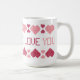 Taza blanca con los corazones y las palabras "TE AMO".