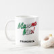 Divertido italiano diciendo Mamma Mia mug. Mamma Mia en un guión de la bandera italiana con una sombra negra. Tipo personalizado en serif san negro en la parte inferior de la taza. ¡Sicilianos e italianos usan mucho este dicho!