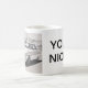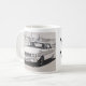 Una taza con una imagen de un coche policía de Rover P6 3500 V8 en un lado y la leyenda 'LE MELLAN en el otro. La imagen es una reproducción af Fox "colección del fron un Sid de la pintura del coche del poli".
