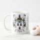 Escudo de armas de la familia de Whaley (escudo) incluyendo la historia y el significado del nombre de Whaley en una taza de cerámica del café/del té. Cada taza tiene dos imágenes de su escudo de armas (uno en cada lado) y la historia y el significado del nombre de Whaley (en el centro). La taza de cerámica