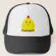 Un gorra del pollo del bebé para cubrir su cabeza.