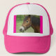 Un caballo hermoso en este gorra rosado y blanco. Perfeccione para los amantes del caballo. Foto original por el mmersdesign.