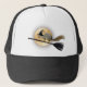 Una ardilla de brujas vuela sobre su escoba por una gran luna llena en este gorra de Halloween.