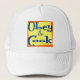 Un gorra leyendo Obey the Cook, un eslogan de cocina ingenioso. ¡Debes obedecer al cocinero si quieres comer! ¡Para los chefs con actitud! Un tipo de letra de los años 50 en azul sobre un fondo amarillo y naranja.