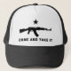 Aquí está una obra clásica. "Viene tomarla" era el lema clásico de la revolución de Tejas. Las banderas originales ahora saben como banderas de Gonzales--fueron volados desafiantemente ofreciendo un canon debajo de una estrella negra después de Texans resistió las fuerzas mexicanas que intentaron agarrar su cañón en la batalla de Gonzales.
