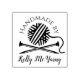 Sello de caucho con una simple bola de hilo y agujas de punto más el texto personalizado, el toque final perfecto para sus regalos de punto.