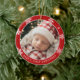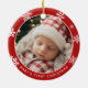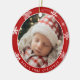 Conmemora un hito querido con este dulce y festivo adorno de Navidad para el primer bebé. Diseñado en estilo clásico de vacaciones, este adorno de foto redondo presenta un fondo rojo atrevido adornado con delicados copos de nieve blancos, enmarcando la foto de tu pequeño de una manera conmovedora y memorable.