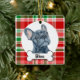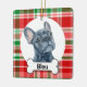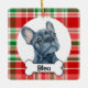Este adorno de Bulldog Francés es un regalo excelente. El fondo de cuadros rojos y verdes combina con toda la decoración navideña. El frenchie fue pintado a mano por mí y está disponible como este adorable adorno. Personaliza el texto para personalizar el regalo. Visita mi tienda para ver muchas otras variaciones de esta obra de arte y otros fondos navideños, incluyendo cuadros verdes y cuadros rojos de búfalo.
