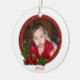 Ornamento de primera Navidad de Babys con flores tradicionales y diseño de corona roja. El texto es totalmente personalizable. Añade tu información o cámbiala por completo. La plantilla se puede utilizar para cualquier imagen de Navidad. Simplemente cambie el texto para adaptarlo a sus necesidades.
