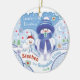 Había una vez un adorno muy especial para un nieto muy especial. Este adorno fue especial porque fue la primera Navidad del niño. Este es un adorno de cerámica circular dulce con dos personajes de Snowbie ilustrados en la parte delantera. Un niño Snowbie y su perro nevado. La espalda está ilustrada con el niño Snowbie abrazando al cachorro y también un verso corto de Navidades. En suaves tonos azules con toques de rojo, este adorable adorno redondo se verá genial en el dormitorio de un niño o en un árbol de Navidad. Personaliza el frente con el nombre de tu nieto y el dorso con el año, y tienes un regalo que durará para siempre.