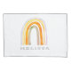 Cute manga funda de almohada de dibujo arcoiris boho. Personalice con su propio nombre personalizado. Diseño con dibujos a mano con acuarelas pastel.