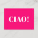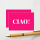 ¡Ciao! Ciao, hola, hola, tarjeta blanca rosa fucsia