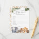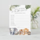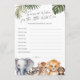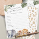 Las tarjetas Wild One Safari Animals Baby Wishes son la combinación perfecta para cualquier ducha de bebé, invitando a los huéspedes a compartir sus sueños y esperanzas para la nueva llegada. Cada tarjeta muestra un encantador diseño acuático con animales de bebé safari queridos, entre ellos un elefante, un león, un tigre, un mapache y un chimpancé, todo enclavado en hojas tropicales que le dan un toque salvaje. Diseñadas específicamente para la ducha de bebé de un niño, estas tarjetas capturan el espíritu de aventura y la alegría de dar la bienvenida a una nueva vida. Como parte de la colección de animales salvajes uno Safari, estas tarjetas de deseos se mezclan perfectamente con tu celebración temática, haciendo de una experiencia memorable y alentadora para todos.