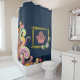 De Ducha sofá floral oscuro con cortina azul