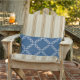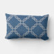 Esta es una almohada lumbar de grado azul exterior con un diseño de entramado blanco. NOTA: La almohada es de tela, pero el "tejido" en azul es parte de la impresión, no del tejido de almohada en sí.