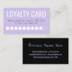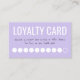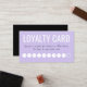 Tarjeta punch de lealtad morada en un diseño muy limpio para tu negocio en morado, blanco y negro. Diez visitas la tarjeta de fidelidad en morado, blanco y negro con tu información de contacto en la parte posterior.
