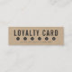 Elegante mini kraft rústico con las palabras "Tarjeta de Lealtad" en negrita y círculos en gris oscuro. Una gran manera de recompensar a sus fieles clientes/miembros. Esta tarjeta de fidelización kraft es perfecta para artesanos y fabricantes de productos hechos a mano, como artistas, tejedores, costureros, etc. Es fácil de personalizar; basta con reemplazar el texto del marcador de posición para añadir su propia información. Para obtener más opciones, como cambiar el tipo de letra, el tamaño/color del texto o el espaciado entre letras, haga clic en el botón "Personalizar". *Tenga en cuenta que la marca de agua Zazzle que aparece en la vista previa del zoom NO aparecerá en el producto impreso final © Rosewood and Citrus