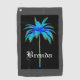 La toalla tropical del golf de la palmera de la turquesa es un diseño único en colores brillantes del verde de la turquesa con un fondo gris y negro. Personalícela con su nombre o dé como regalo modificado para requisitos particulares a un amigo.