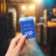 A sus invitados les encantará esta moda VIP pase una dulce invitación de 16 insignias. Este diseño moderno presenta un fondo azul real, luces de verano y fuentes caligráficas.