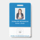 Insignia moderna de nombre de empleado inmobiliario con foto y logo. Diseñado con colores azul y blanco con un lugar para su foto, logotipo, nombre, título y nombre de la empresa. Perfecto para un Realtor, Agente, Broker o cualquier profesional en el mercado de la vivienda. Uso en casas abiertas, eventos de apreciación de clientes y visitas a casa.