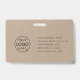 Simple y elegante placa de identificación corporativa de kraft que puede ser fácilmente personalizada con la foto de identificación de su empleado, nombre, puesto, logotipo de la empresa y detalles de su negocio. El diseño es elegante e incluye una moderna tipografía minimalista y un diseño horizontal que destaca entre la multitud. La imagen que se muestra es para fines de ilustracion y sólo se sustituye por la suya. La imagen de marcador de posición es de una joven de moda con una chaqueta de cuero.