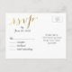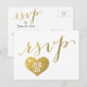 El glamour del Relieve metalizado dorado falso con el corazón | Postal RSVP de boda. Elke Clarke © Otros colores disponibles en www.zazzle.com/monogramgallery. Un sencillo pero versátil guión manuscrito rsvp para bodas u otras ocasiones especiales como cenas de ensayo, duchas de pareja, celebraciones del aniversario de bodas. Relieve metalizado dorado es un efecto fotográfico impreso.