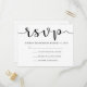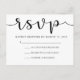 Estas sencillas y mínimas tarjetas RSVP de boda incluyen caligrafía negra en un libro blanco.