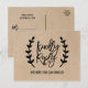 Esta carta rústica de moda falsa es perfecta para un boda de moda. El diseño presenta una divertida tipografía con letras a mano con deliciosos bucles y remolinos rodeados de una sencilla corona de ramas de olivo. Esta tarjeta postal de respuesta boda le pregunta a los clientes qué comida desean en su recepción. Nota: Esto no está impreso en papel kraft real. Es un gráfico de alta calidad hecho para parecer un papel kraft.