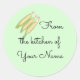 Estos pegatinas identificarán quién es el chef del maíz. Presentan mi pintura de tres orejas de maíz, junto con el texto, Desde la cocina de, con una plantilla para el nombre del cocinero. El color de fondo es verde claro. Gracias por comprar CherylsArt en Zazzle.