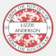 Un centro de damasco de bonito y una tipografía circular le dan una bonita etiqueta a sus recetas caseras. En un rojo vintage, blanco y negro. Perfecto para mermeladas, jaleas y panes.