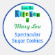 "Desde la cocina de" retro personalizados horneando pegatinas con un guión divertido y lindas letras kitsch contra bloques de color azul, verde y verde azulado. La línea superior tiene espacio para su nombre en escritura verde, la segunda línea es para el nombre de sus galletas, productos enlatados u otra receta en letras azules y azul oscuro rodea la etiqueta. Personalizar para cambiar fuentes, colores y más, incluso para guardar el diseño para más adelante.