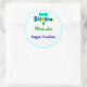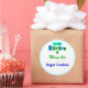 "Desde la cocina de" pegatinas retro personalizados con escritura divertida y lindas letras kitsch contra bloques de color azul, verde y verde azulado. La línea superior tiene espacio para su nombre en escritura verde, la segunda línea es para el nombre de sus galletas, productos enlatados u otra receta en letras azules. Un azul glacial rodea la etiqueta. Haga clic en Personalizar para cambiar fuentes, colores y más, incluso para guardar el diseño más adelante.