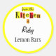 "Desde la cocina de" arte retro personalizado con escritura y lindas letras kitsch contra bloques de color de rojo, naranja y amarillo. Espacio para su nombre en letras de guión y una segunda línea de texto en letras lindas de bloqueo. Haga clic en Personalizar para cambiar fuentes, colores de borde y más, incluso para guardar el diseño más adelante.