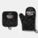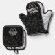 Modern black oven mitt and pot holder featuring white utensil doodles and a bold “Your Name’s Kitchen” badge. Add a name and year for a stylish, heat-safe gift for home cooks and chefs.