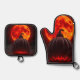 Rule your Halloween kitchen with this premium oven mitt and pot holder set featuring the Pumpkin Emperor standing before a massive blood-red eclipse moon. Molten lava glow, cracked royal pumpkin texture, cinematic smoke, and dramatic rim lighting deliver a bold luxury gothic horror look. Printed in vibrant ultra-HD quality, this set blends striking Halloween style with everyday functionality—perfect for festive cooking, gifting, and impulse buyers who love dark, statement-making décor.