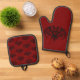 De Manoplas Red Bat Patterned Oven Mitt and Pot Holder Set