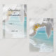 El diseño es fresco y elegante y cuenta con una verde azulada escena marina azul acuático con olas blancas que se estrellan en la costa. Agua azul claro y clara, arena blanca y azul cielo con nubes de color blanco. En primer plano se encuentra una hermosa flor de orquídeas blancas que se acercan a la más alta calidad. Esta tranquila y serena imagen zen es perfecta para una boda en la playa, o para vacaciones en un balneario, vacaciones con temática de viajes especiales o ocasión de negocios. Relájese mientras recibe un masaje, una manicura en el spa o una pedicura en el salón. Podrá disfrutar de relajación y tranquilidad junto a la playa y la orilla del océano. Todos los diseños Copyright © 2012 www.CustomInvitesOnline.com Este diseño está disponible como una colección completa!