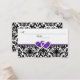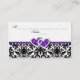 Esta tarjeta de acompañamiento de recepción de damasco blanco y negro tiene un par de corazones de joyas de diamante con purpurina púrpura que coincide con la invitación de boda que se muestra a continuación. Si hay otros elementos coincidentes que necesite, envíe un correo electrónico a niteowlstudio@gmail.com.