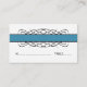 Elegante y elegante Deco Flourish Boda Place Card con un elegante borde azul giratorio. Este elegante diseño es la elección perfecta para un boda de estilo vintage inspirado en la moda deco. Se proporciona espacio en este producto para escribir los nombres y números de la tabla donde cada uno de sus invitados estará sentado. Haga clic en "Personalizar" para encontrar más opciones de personalización.