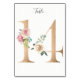 Número dorado con tarjeta de número de mesa de embutido floral pastel suave. Personalice el estilo, el tamaño y el color del tipo de letra del texto.