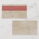 Sencilla y elegante tarjeta Rustic Lace Boda Place con un fondo de papel texturado vintage y un borde de encaje dulce y delgado en rojo oscuro. Se proporciona espacio en este producto para escribir los nombres y números de la tabla donde cada uno de sus invitados estará sentado. Haga clic en el botón "Personalizar" para encontrar opciones de personalización adicionales.