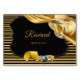 Una textura de seda dorada lujosa y brillante que se extiende a través de dos anillos de boda sobre un fondo negro dramático con una franja estilo Deco para dar al diseño un aspecto chic y glamuroso para personalizar para cada invitado en la mesa