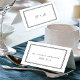 Sencilla, elegante y de buen gusto, esta carta clásica sirve de carta de presentación. La plantilla está configurada para personalizar con el nombre del invitado y el número de la tabla en la parte delantera y las iniciales de la novia y el novio en la parte posterior. La tarjeta se imprime de forma plana y se dobla fácilmente a una tarjeta de lugar de pie.La tipografía clásica tradicional de escritura se utiliza para las iniciales de monograma de la novia y el novio, emparejadas con el tipo de letra sif intemporal para los nombres de los invitados. Un elegante borde de doble línea enmarca el texto en un estilo formal. Cree una tarjeta para cada invitado y añada al carrito.
