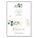 Elegante tarjeta de plaza plana con un ilustracion de eucalipto y hojas de oro en acuarela. La línea horizontal en el centro para mostrar dónde doblar (puede quitarla)