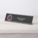 Placa de nombre de escritorio de oficina de temas oncológicos médicos para el centro de tratamiento del cáncer o el personal del hospital con una plantilla de logotipo rosa que puede reemplazar con el logotipo de su propia empresa o el gráfico que sus profesionales médicos pueden utilizar en su escritorio.