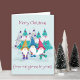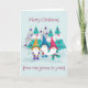 Graciosa tarjeta de vacaciones con un colorido diseño gnomo y redacción editable. El diseño presenta gnomos bonitos en un bosque de árboles de navidad decorados con tipografía caprichosa. La frase dice "Feliz Navidad desde nuestro hogar a nuestro hogar" y usted puede editarlo como desee. También puede editar el saludo de los navidades dentro e incluir su firma y nombres.