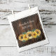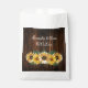Pase los favores de boda para sus invitados con un juego de Bolsa Rustica de Favor de la Boda de Girasol. El diseño de la bolsa incluye un fondo rústico de madera con un elegante ramo de girasoles. Personaliza con los nombres del novio y la novia junto con la fecha del boda. También hay material de boda adicional disponible con este diseño.