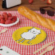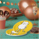 Ese personalizado Gato. Gato en un plato amarillo. Un plato fiesta de gato divertido.