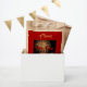 Personalizable Bolso de favores de Año Nuevo con fuegos artificiales rojos + Feliz Año Nuevo (no personalizable) y año, mensaje y apellido (para personalizado). Puede cambiar fácilmente el texto (color, fuente, tamaño y posición) haciendo clic en el botón personalizar. servilleta de papel, placa de papel, gorra de papel, tarjeta de felicitación, postal, pegatina y más... No olvides toda la colección.